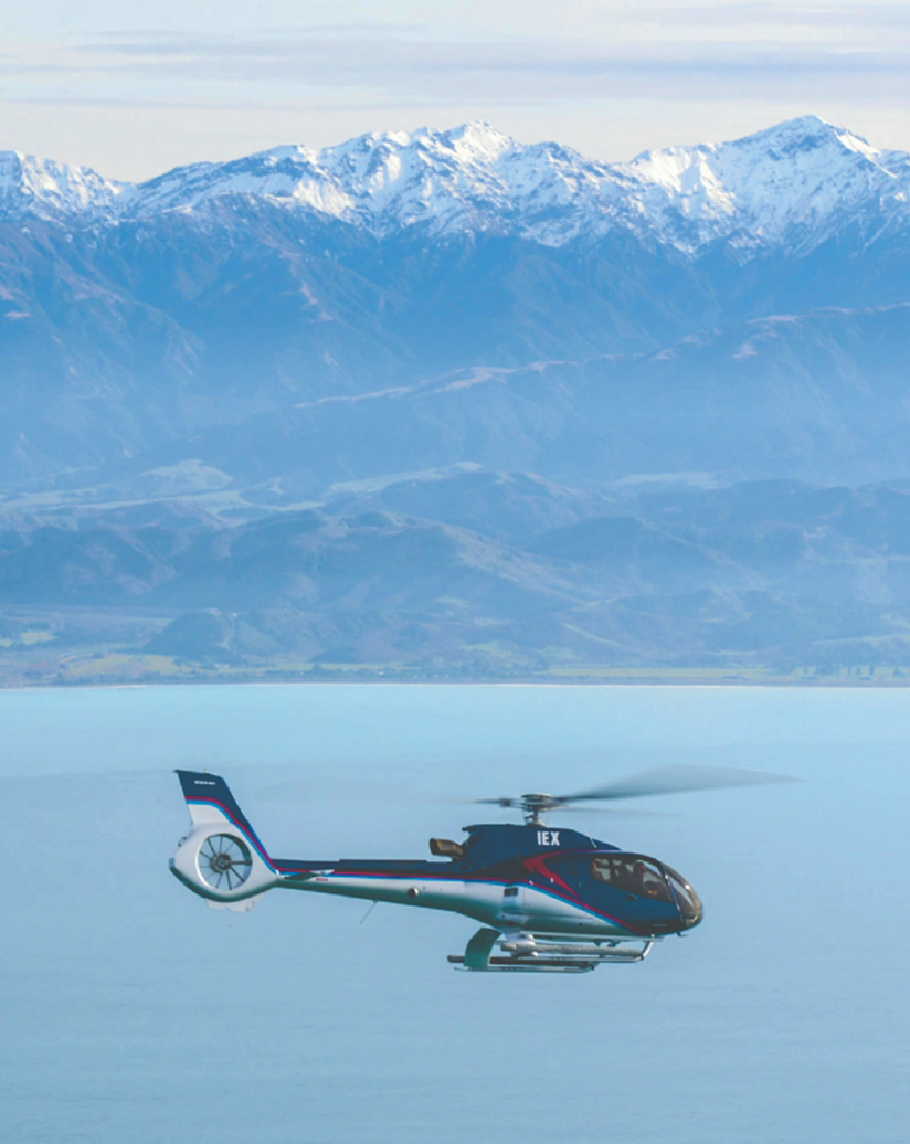 Departing Otahuna, the helicopter tracks directly over Christchurch and up the coast of the South Island to the seaside town of Kaikoura. Guests will enjoy an unsurpassed opportunity to view mighty sperm whales, Dusky dolphins and New Zealand fur seals from the air. The return flight provides the ability to stop for lunch at Greystone Winery or Black Estate.