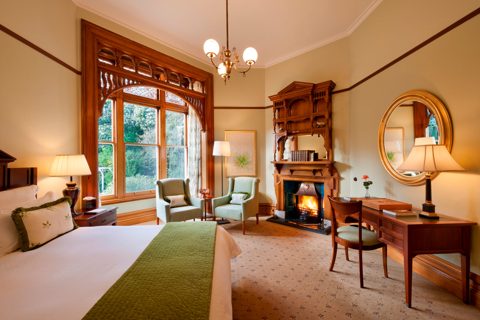 Each of Otahuna's seven suites is an enclave of refined comfort. Here, the classical ambience created by ornate fireplaces, carved inglenooks and lavish bathrooms has been enhanced with luxurious fabrics and freshly picked flowers. Each of Otahuna's seven suites is an enclave of refined comfort. Here, the classical ambience created by ornate fireplaces, carved inglenooks and lavish bathrooms has been enhanced with luxurious fabrics and freshly picked flowers.