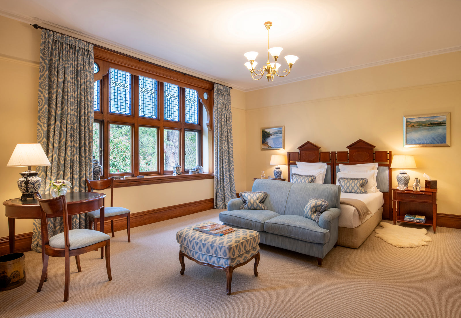 The Botanical Suite is situated in the original Morning Room of the house on the ground floor and offers a gingerbread mantlepiece and picture window overlooking the gardens.