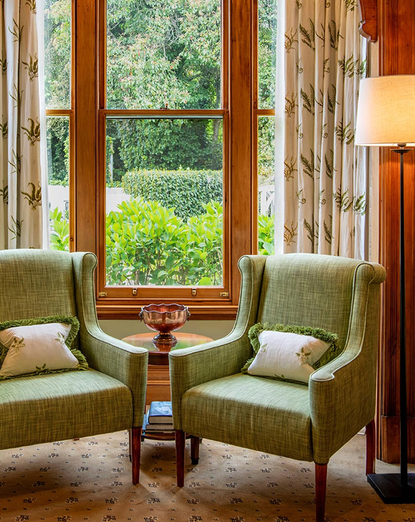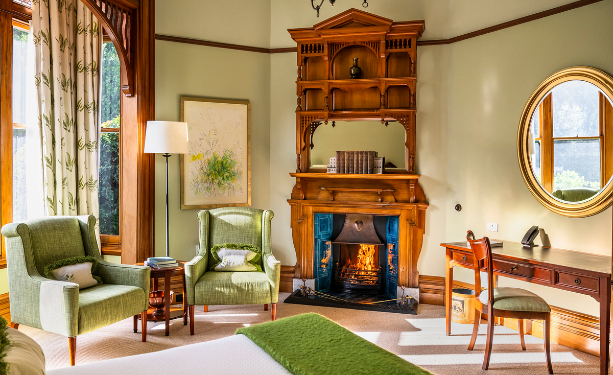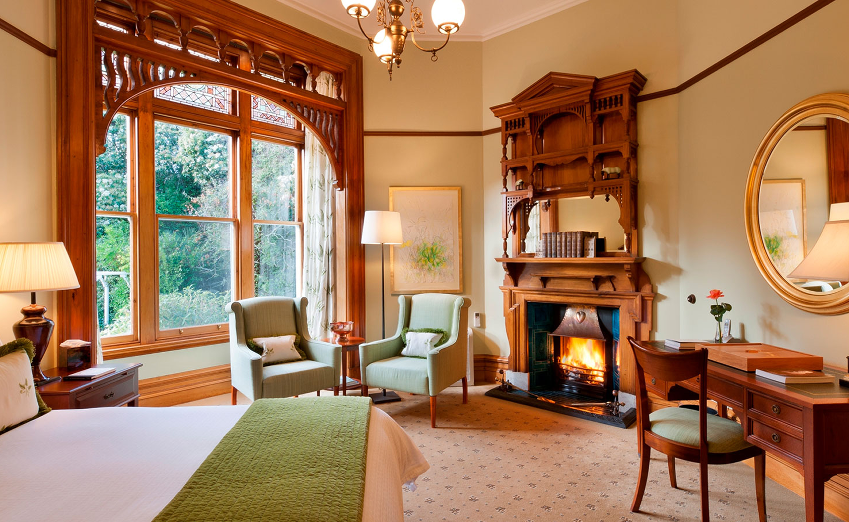 Accommodation, individually designed by leading interior designers, located in unique areas of the original homestead building and complemented by a collection of specially commissioned New Zealand art and furnishings.